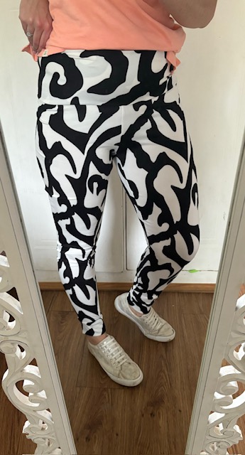 - Tights – these are high waisted tight fitting pants with a double layer band at the top finished off with elastic. Lightweight fabric
