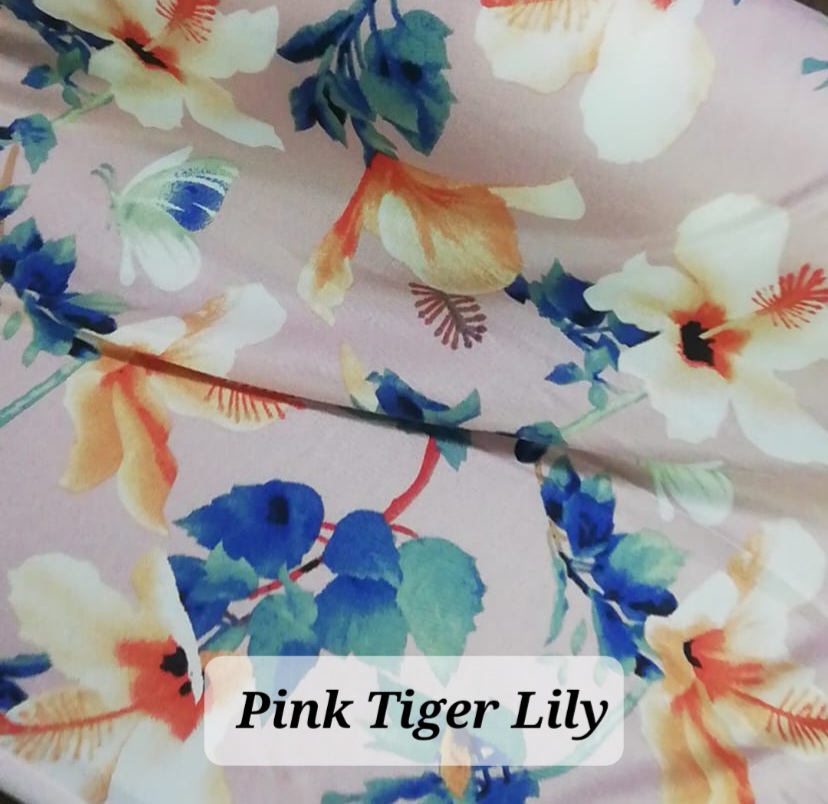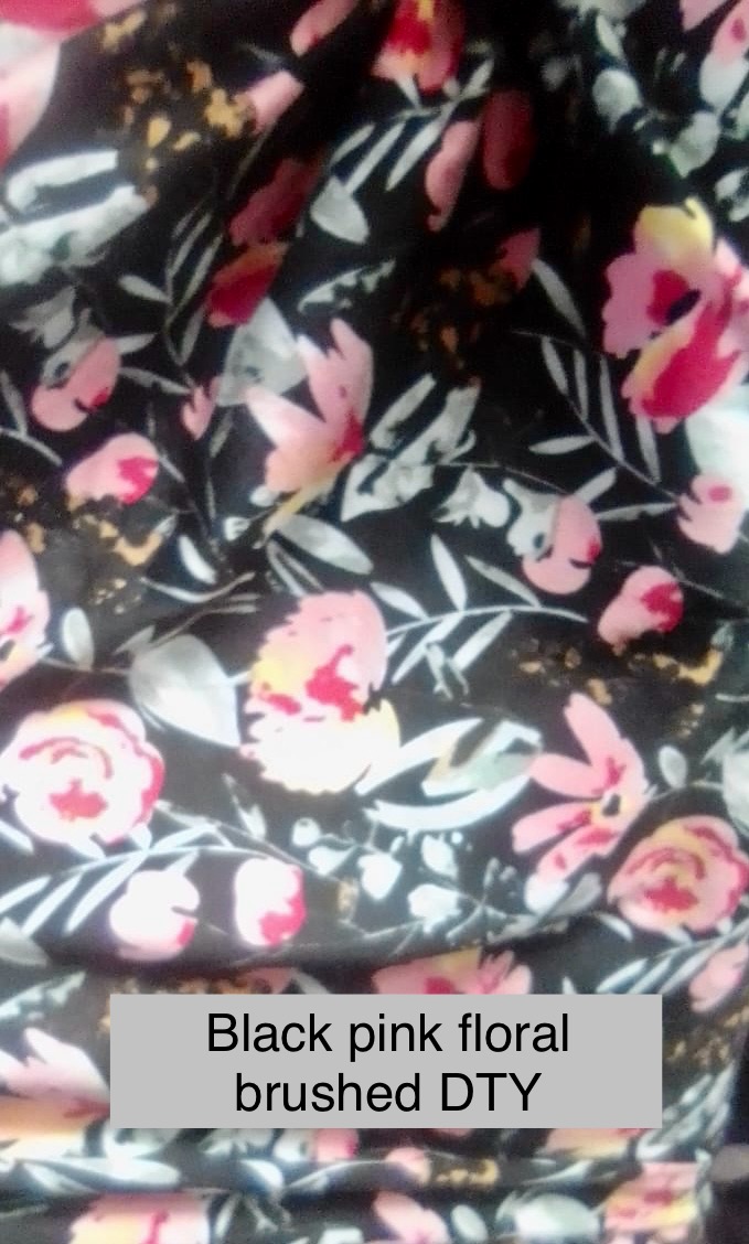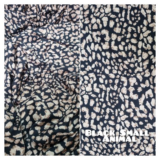 | Fabric Prints | Black on white motive, Black Small Animal, Nude pink Roses, Black pink floral brushed DTY, brown dainty leopard, nude orange brushed DTY |